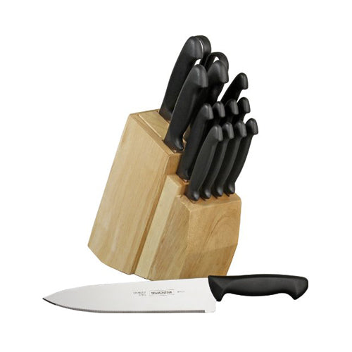 15-pc set includes: paring knife, utility knife, boning knife, roast knife, chef's knife, eight steak knives, wood and block