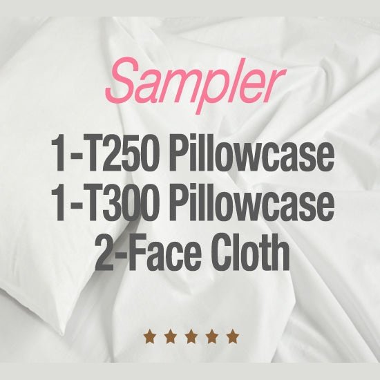 We will mail you basic samples to give you a chance to decide. 2 Pillowcases and 2 face cloths.